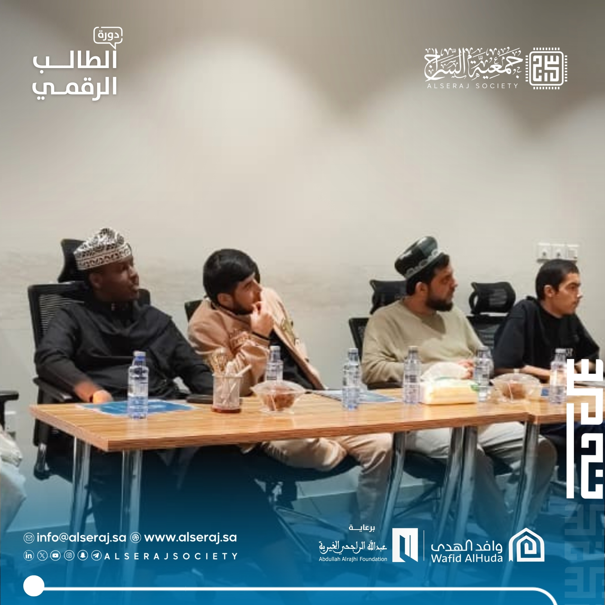 أقامت جمعية السراج دورة الطالب الرقمي التاسعة في سلسلة دورات الطالب الرقمي في يومها الثاني والتي تستمر اربعة أيام برعاية مؤسسة عبدالله الراجحي الخيرية بمركز وارث بالتعاون مع وافد الهدى، حيث انتقلت إلى الجانب الإبداعي بالتركيز على فن صناعة المحتوى المؤثر.