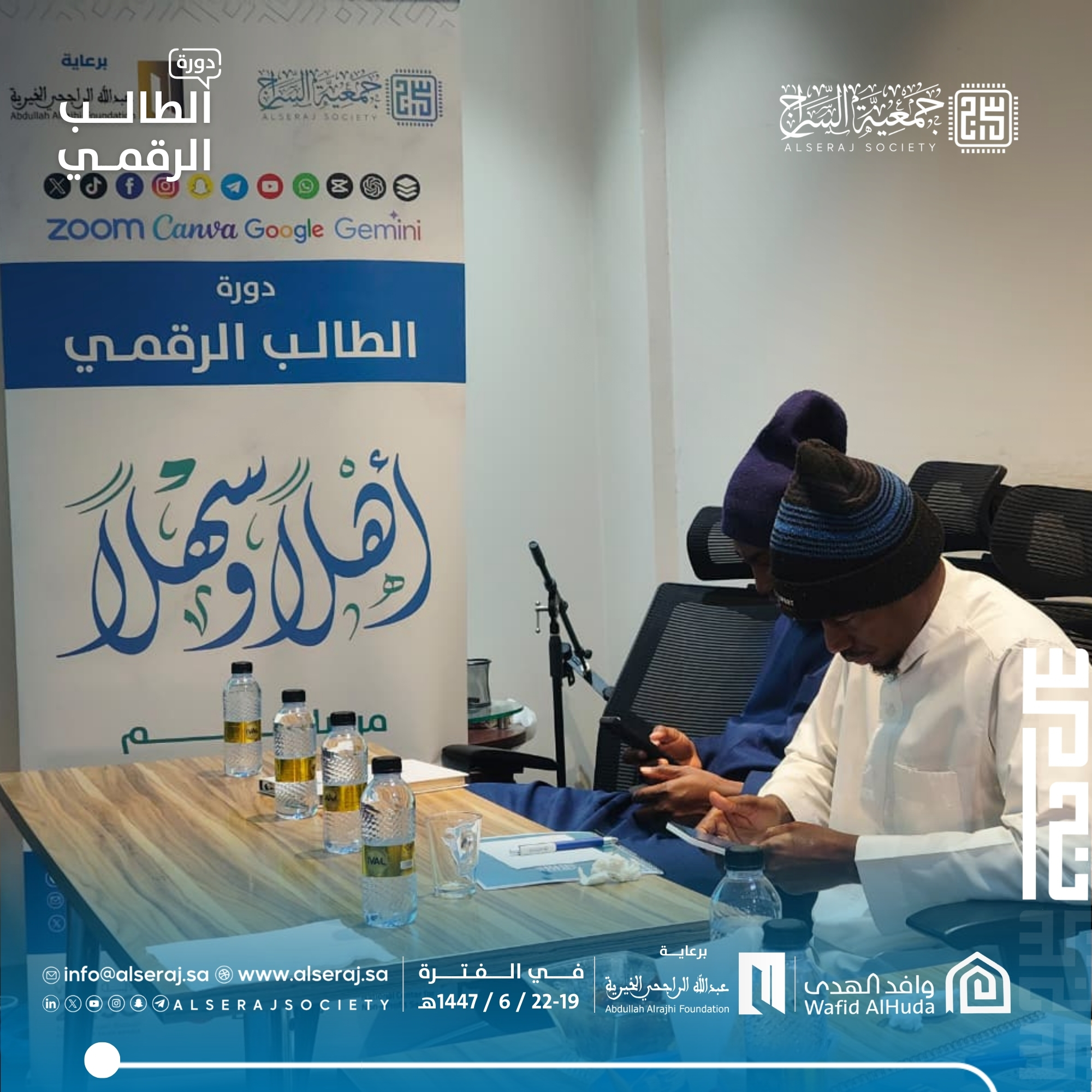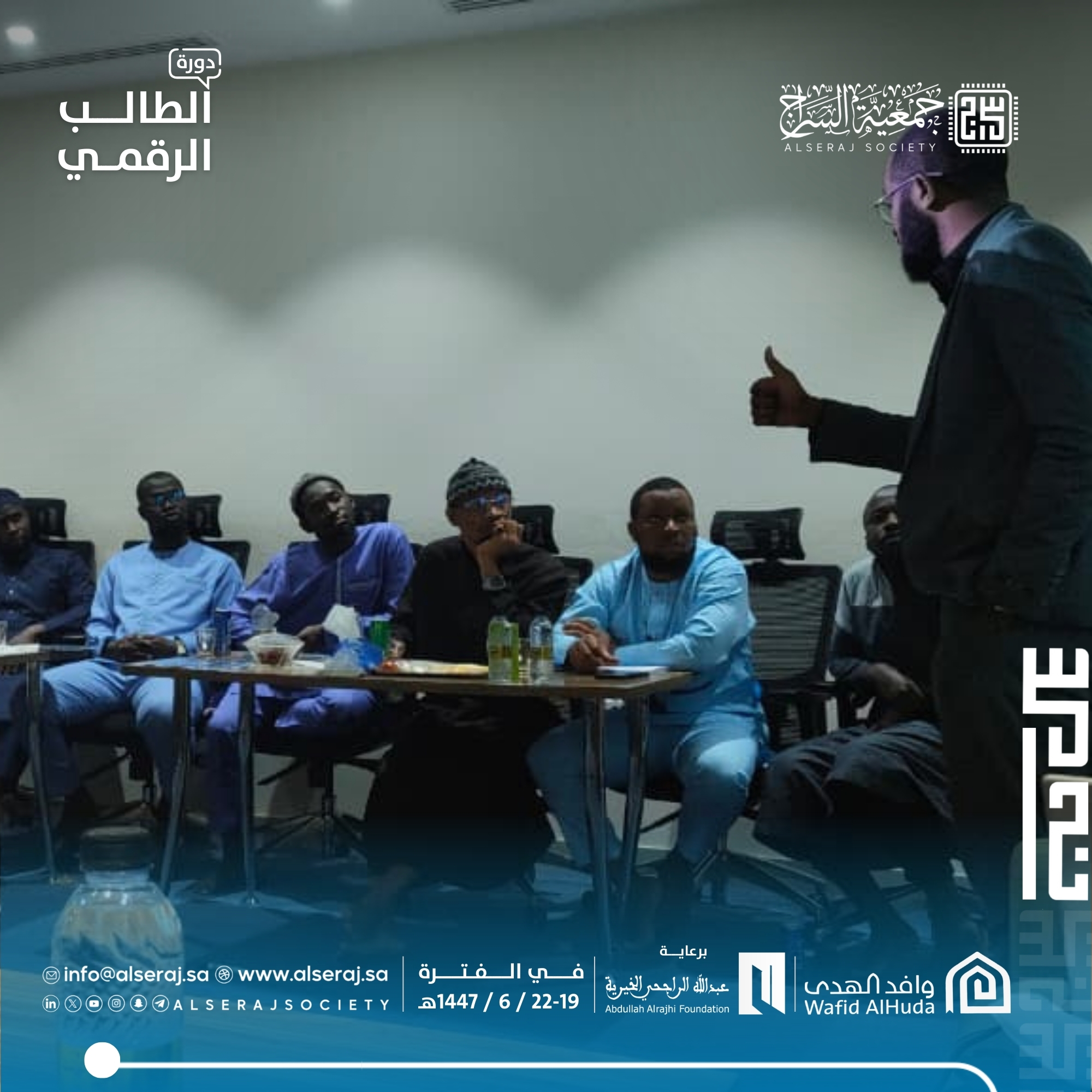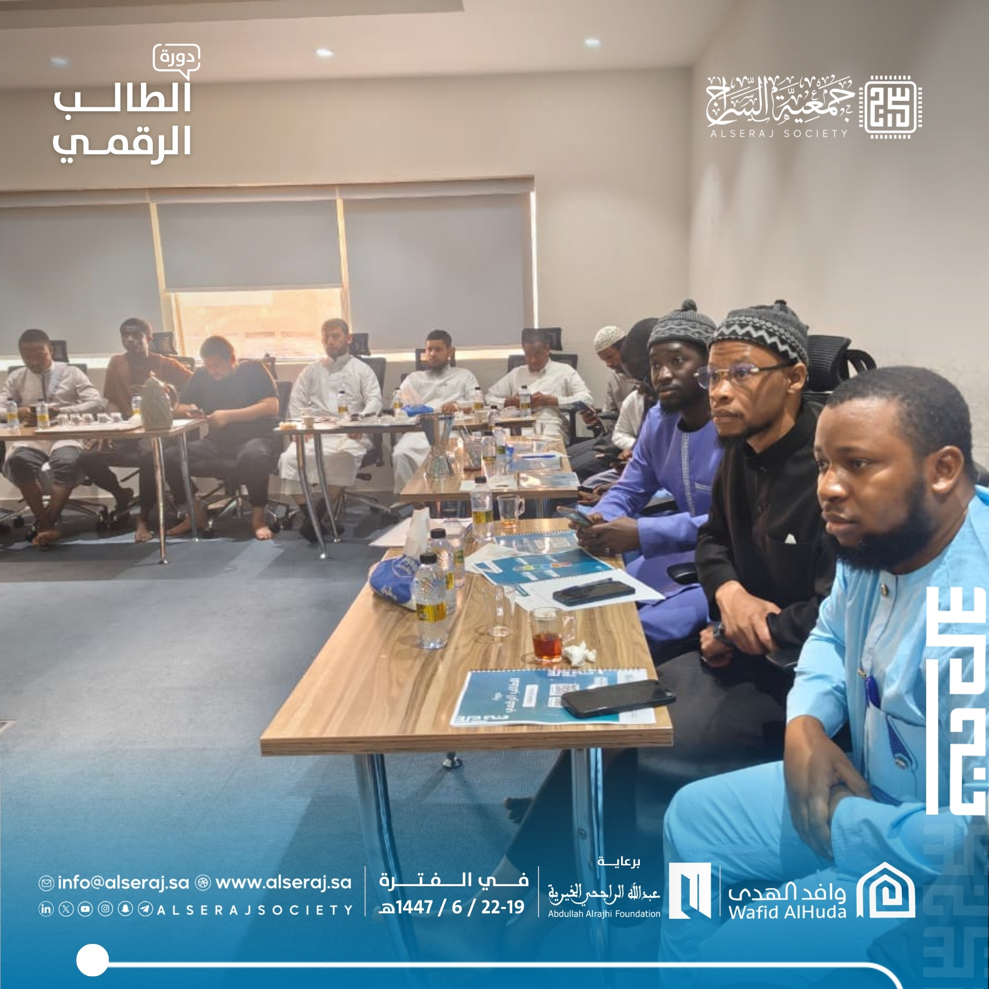 أقامت جمعية السراج اليوم الخميس 11 ديسمبر 2025م دورة الطالب الرقمي السابعة في سلسلة دورات الطالب الرقمي في يومها الثاني والتي تستمر اربعة أيام برعاية مؤسسة عبدالله الراجحي الخيرية بمركز وارث بالتعاون مع وافد الهدى، حيث انتقلت إلى الجانب الإبداعي بالتركيز على فن صناعة المحتوى المؤثر.