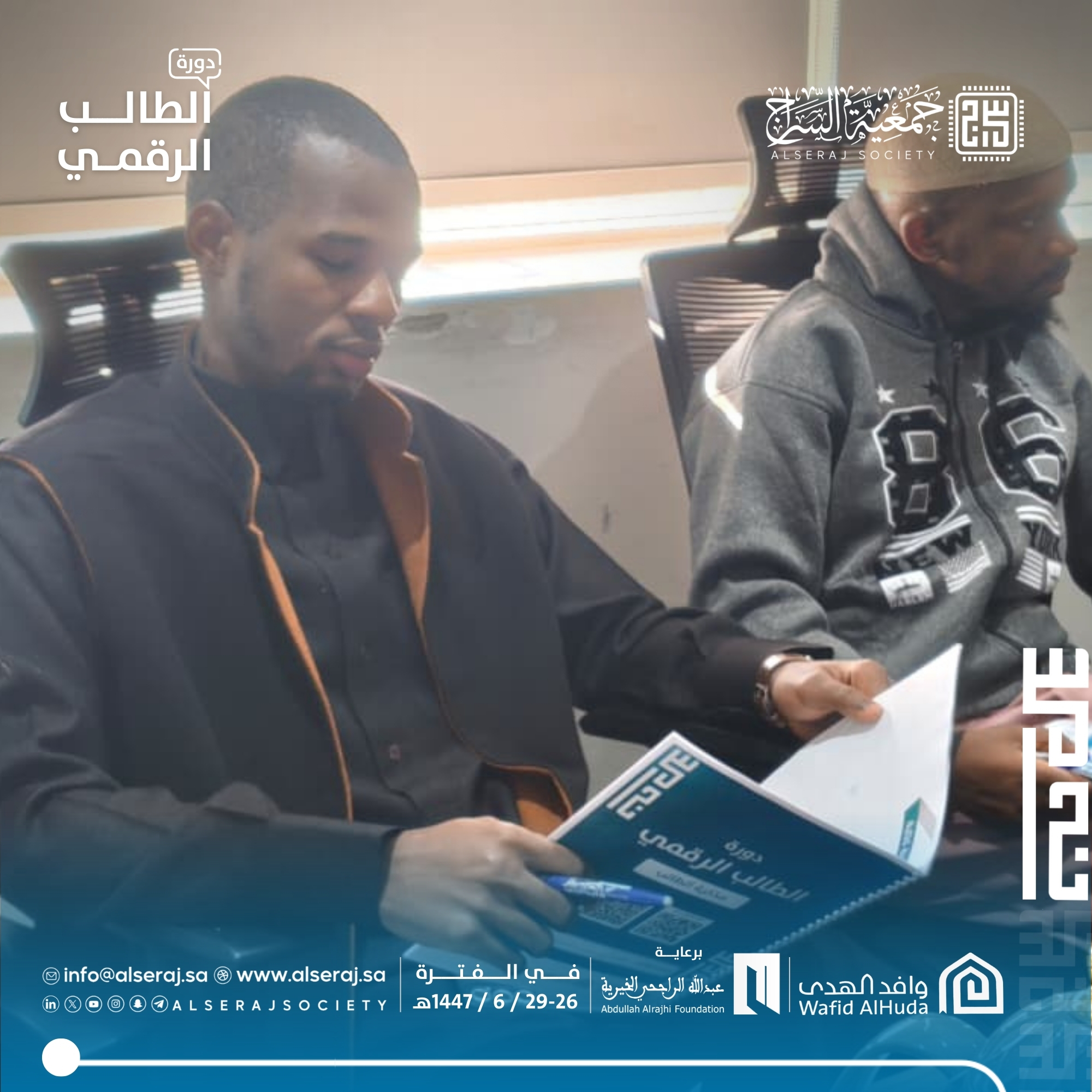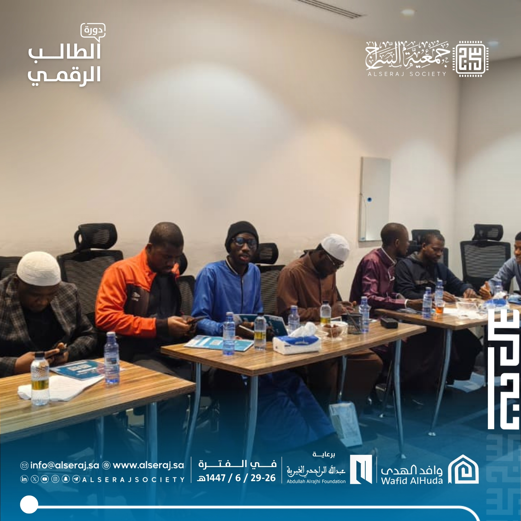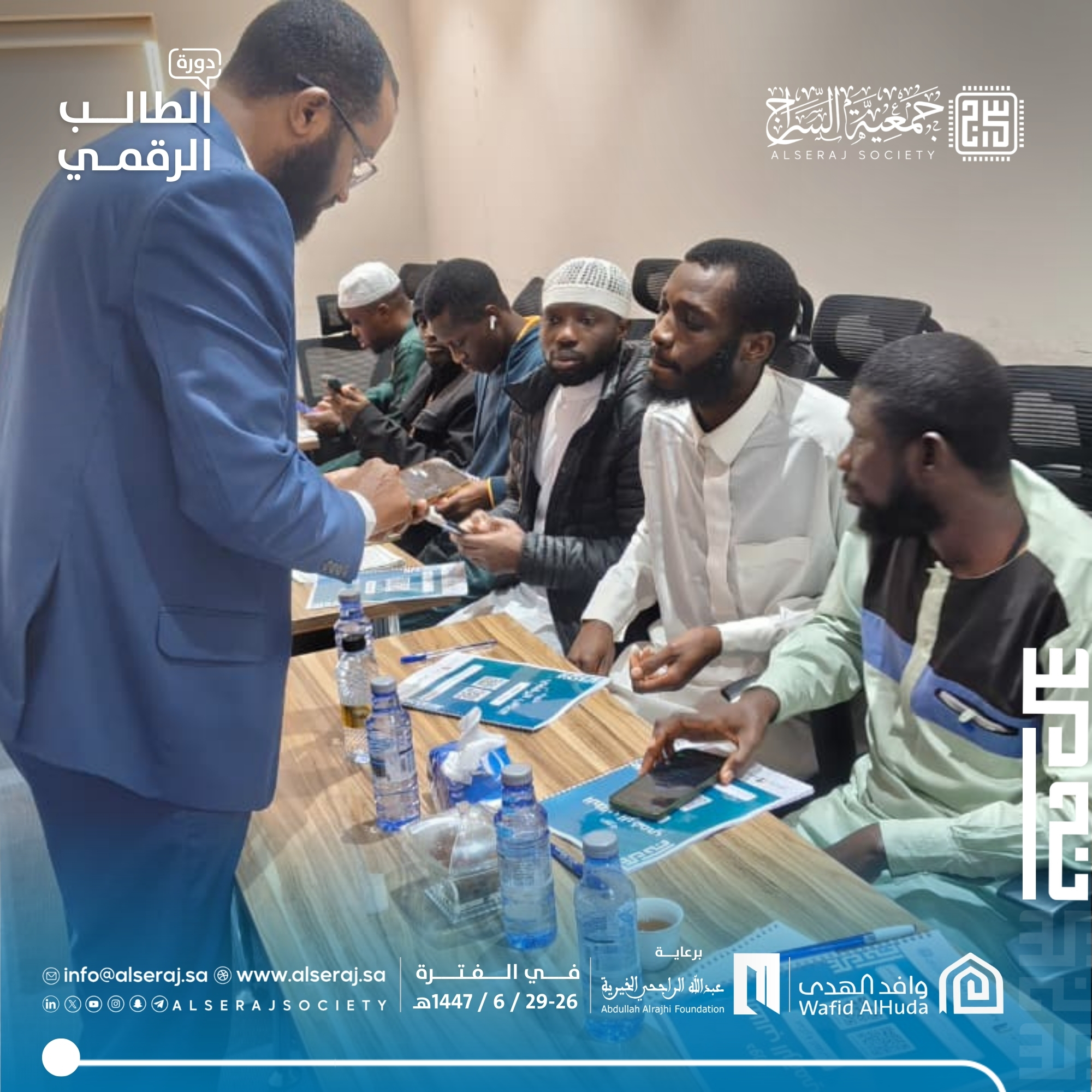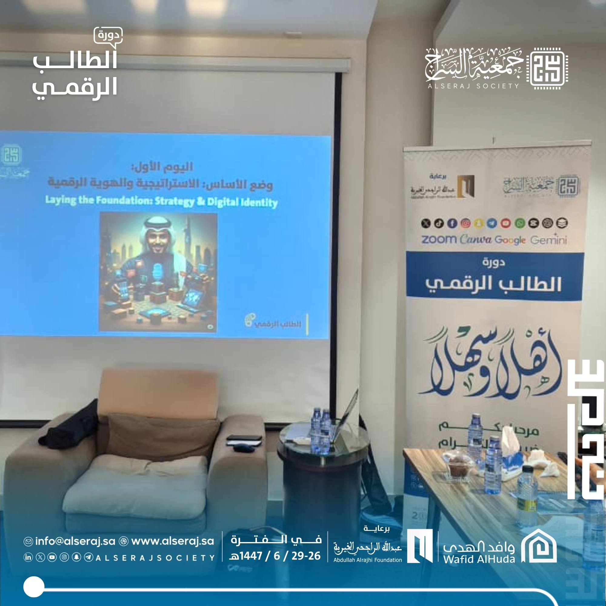 أقامت جمعية السراج اليوم الاربعاء 17 ديسمبر 2025م الموافق 26 جمادى الاخرة 1447هـ دورة الطالب الرقمي الثامنة في يومها الاول وتستمر اربعة ايام برعاية مؤسسة عبدالله الراجحي الخيرية بمركز وارث بالتعاون مع وافد الهدى ,حيث تهدف الدورة إلى تزويد الطلاب الدوليين بالجامعات السعودية بالمهارات والأدوات التقنية الحديثة لإدارة منصاتهم الرقمية بفاعلية، مع تمكينهم من توظيف الذكاء الاصطناعي في تطوير محتوى مبتكر وقيَمي.